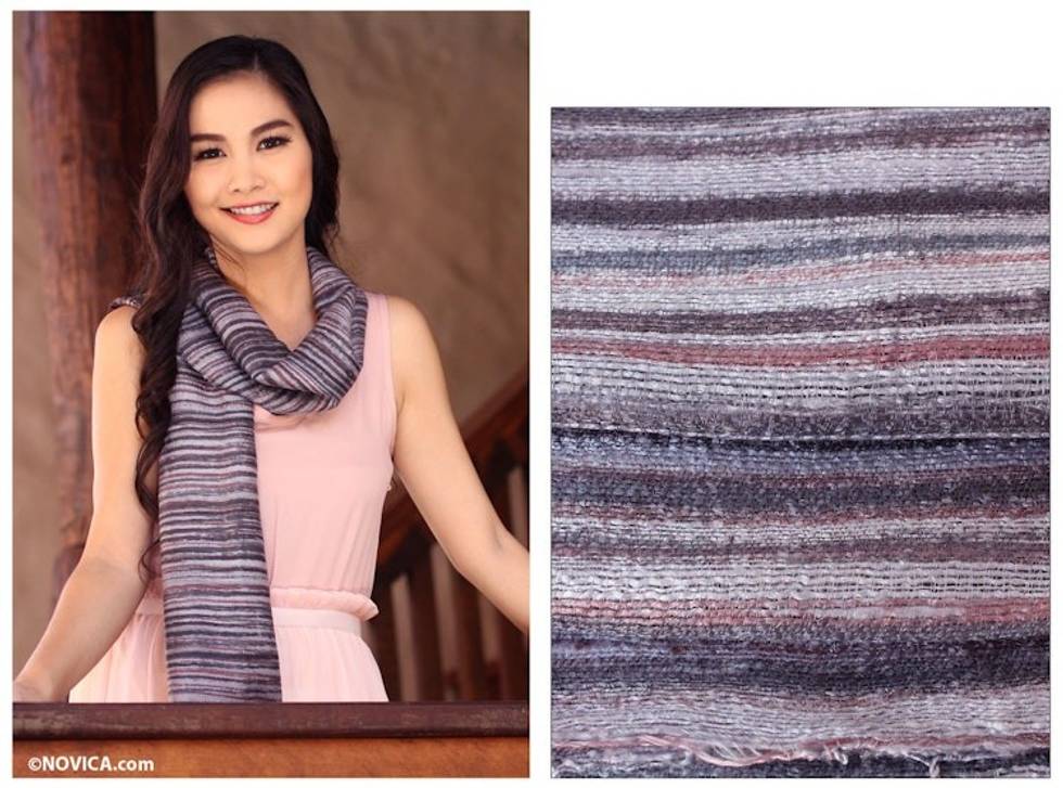 When I ordered this scarf, I wasn't sure of what to expect. It is absolutely beautiful!! The colors are wonderfully muted so that the scarf can be worn with a lot of different things. From now on, this is where I will purchase my scarves and gifts for family and friends!!