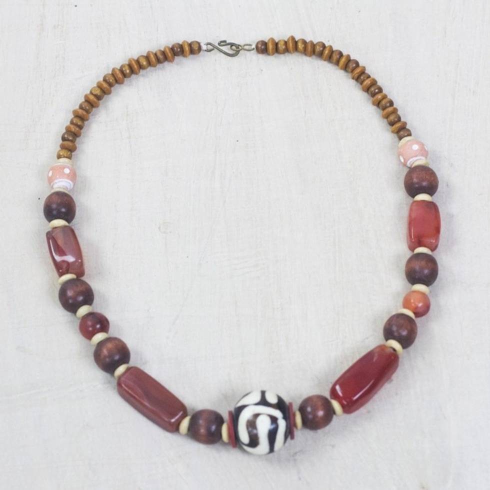 Handcrafted Beaded Agate and Bone Necklace from Africa 'Maneray' Item ID: 2671807145