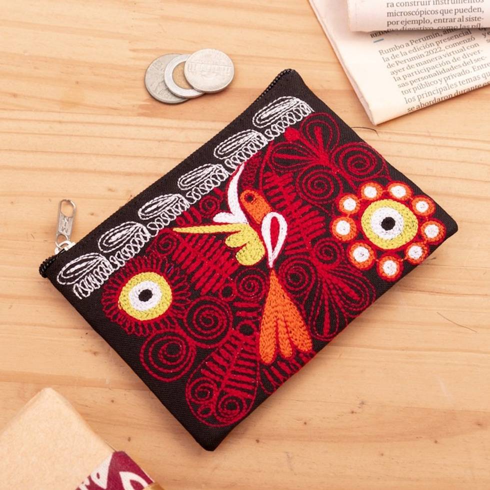 Handcrafted Bird-Themed Red Acrylic Embroidered Coin Purse 'Fire Flight' Item ID: 2671697813