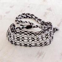 Handcrafted Black and Grey Stripe Cotton Macram Headband 'Moonlit Ripples' Item ID: 2671777464