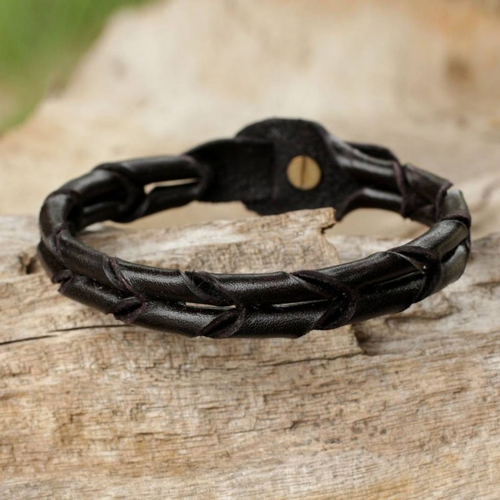 This leather bracelet is very attractive and molds to different sized wrists. It is a quality piece by a talented artisan.