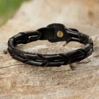 Handcrafted Black Braided Leather Bracelet for Men 'Night World' Item ID: 2669926367