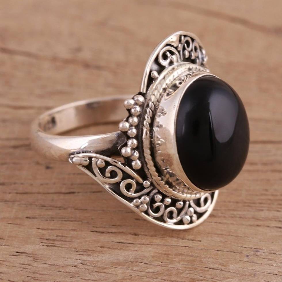 Handcrafted Black Onyx Cocktail Ring from India 'Magical Allure' Item ID: 2671791153