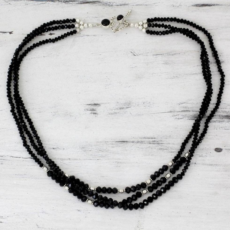Handcrafted Black Onyx Triple Strand Necklace 'Ebony Elegance' Item ID: 2671794022