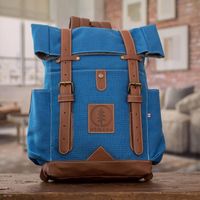 Handcrafted Blue Acrylic Leather-Accented Backpack 'Blue Journey' Item ID: 2676659664