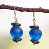Handcrafted Blue and Black Glass Beaded Dangle Earrings 'Adom Nkoaa' Item ID: 2671804049