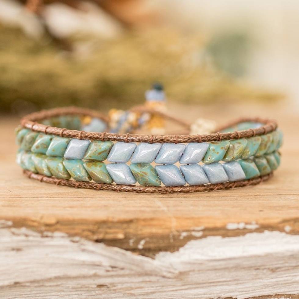 Handcrafted Blue and Green Glass Beaded Wristband Bracelet 'Celestial Current' Item ID: 2671768903
