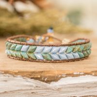 "Cristobal Ramirez reminisces about the ethereal rivers surrounding the classic Guatemalan towns in a display of natural beauty, obtaining the essential inspiration to create this sublime wristband bracelet handwoven from waxed nylon cords. The piece-equipped with a toggle clasp adorned with a mosaic-inspired pattern-features a gorgeous combination of diamond-shaped glass beads in blue and green hues, the colors of the Guatemalan waters."
