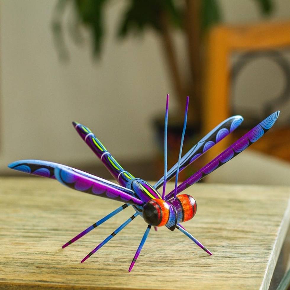 Handcrafted Blue Copal Wood Dragonfly Sculpture from Mexico 'Sweet Freedom in Blue' Item ID: 2669939354