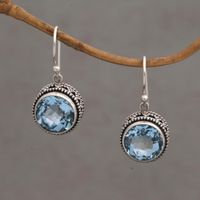 Handcrafted Blue Topaz and Sterling Silver Dangle Earrings 'Sparkling Haven' Item ID: 2669920609