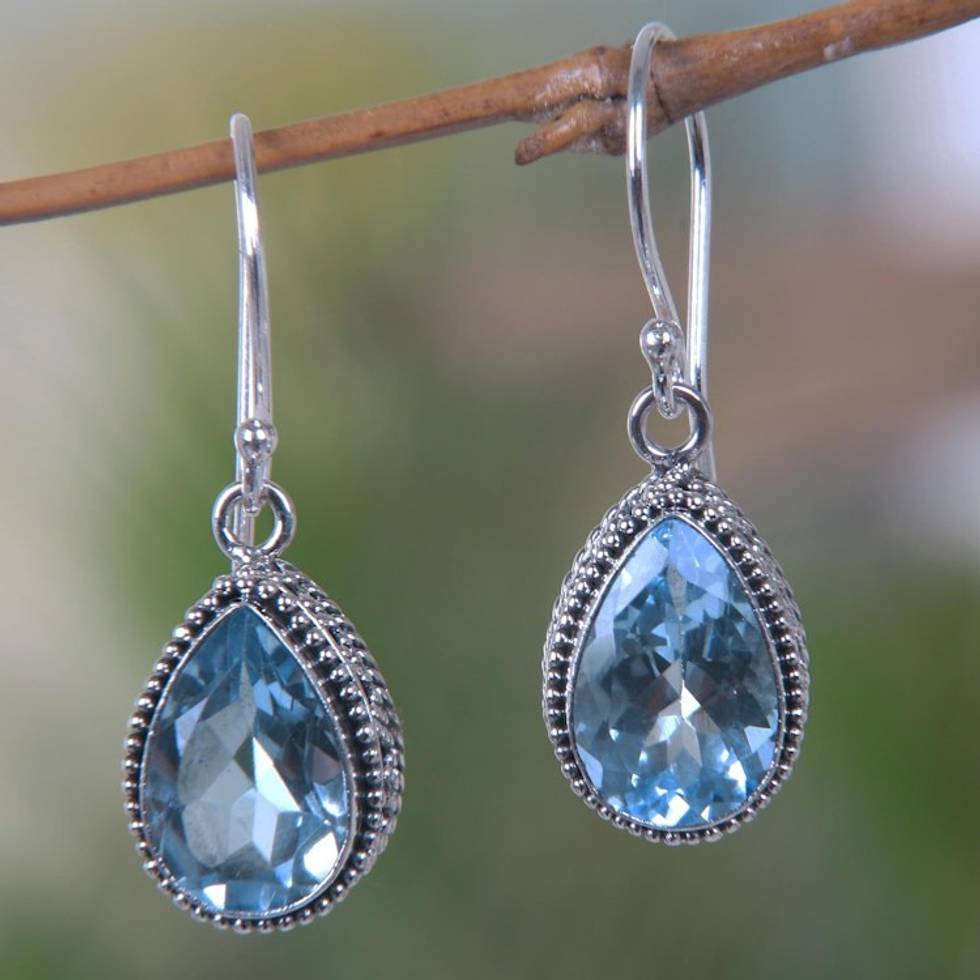 Handcrafted Blue Topaz and Sterling Silver Earrings 'Sparkling Dew' Item ID: 2671821372