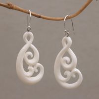 Handcrafted Bone Dangle Earrings from Bali 'Swirly Vines' Item ID: 2669922381