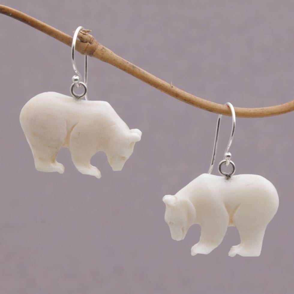 Handcrafted Bone Grizzly Bear Dangle Earrings from Bali 'Grizzly Brothers' Item ID: 2671474480