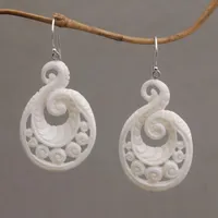 Handcrafted Bone Spiral Motif Dangle Earrings from Bali 'Swirling Scales' Item ID: 2669920624