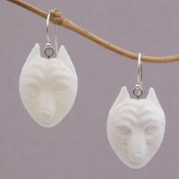 Handcrafted Bone Wolf Head Dangle Earrings from Bali 'Wolf Pack' Item ID: 2671734905