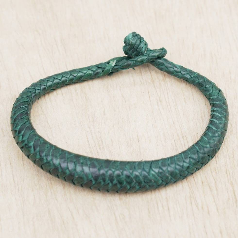 Handcrafted Braided Leather Bracelet in Green 'Greenish Grace' Item ID: 2671805487