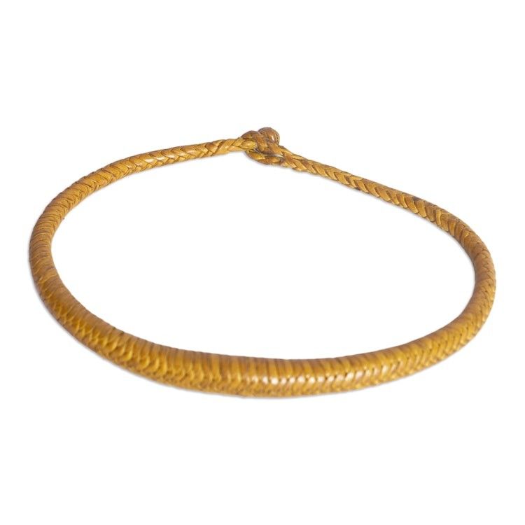 Handcrafted Braided Leather Necklace in Yellow from Ghana 'Mpusia in Yellow' Item ID: 2671805364