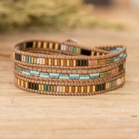 Handcrafted Brown and Blue Glass Beaded Wrap Bracelet 'San Cristobal in Autumn' Item ID: 2671768883