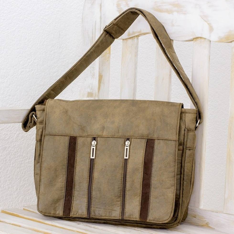 Handcrafted Brown Faux Leather Messenger Bag from Costa Rica 'Elegant Combination' Item ID: 2671779793