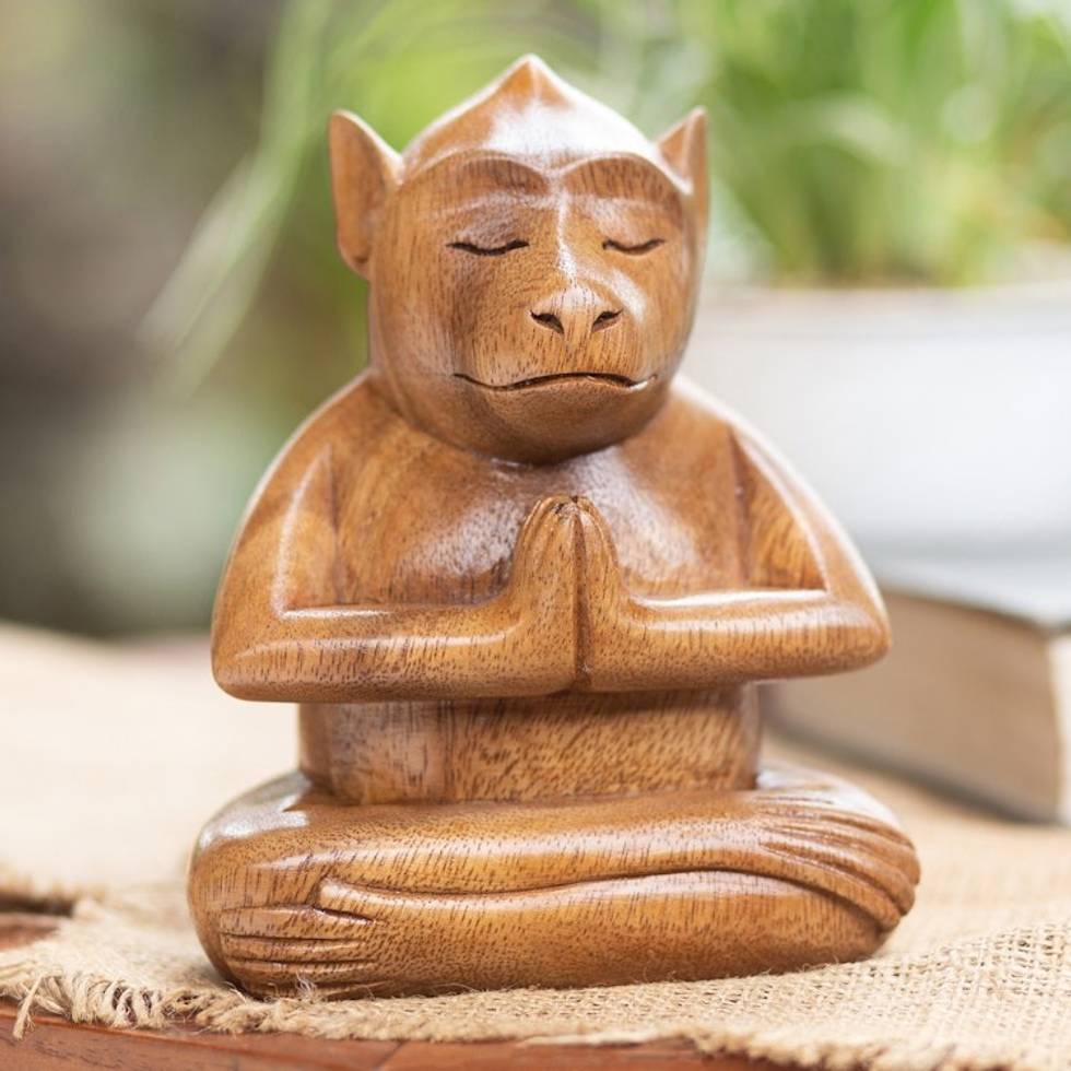 Handcrafted Brown Suar Wood Monkey Statuette from Bali 'Joyous Apprentice' Item ID: 2671763114
