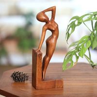 Handcrafted Brown Suar Wood Sculpture of a Female Figure 'Divine Silhouette' Item ID: 2671563574