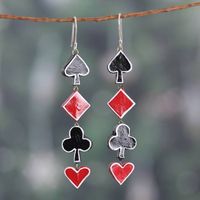Handcrafted Card Suit-Themed Ceramic Dangle Earrings 'Lucky Suits' Item ID: 2676664210