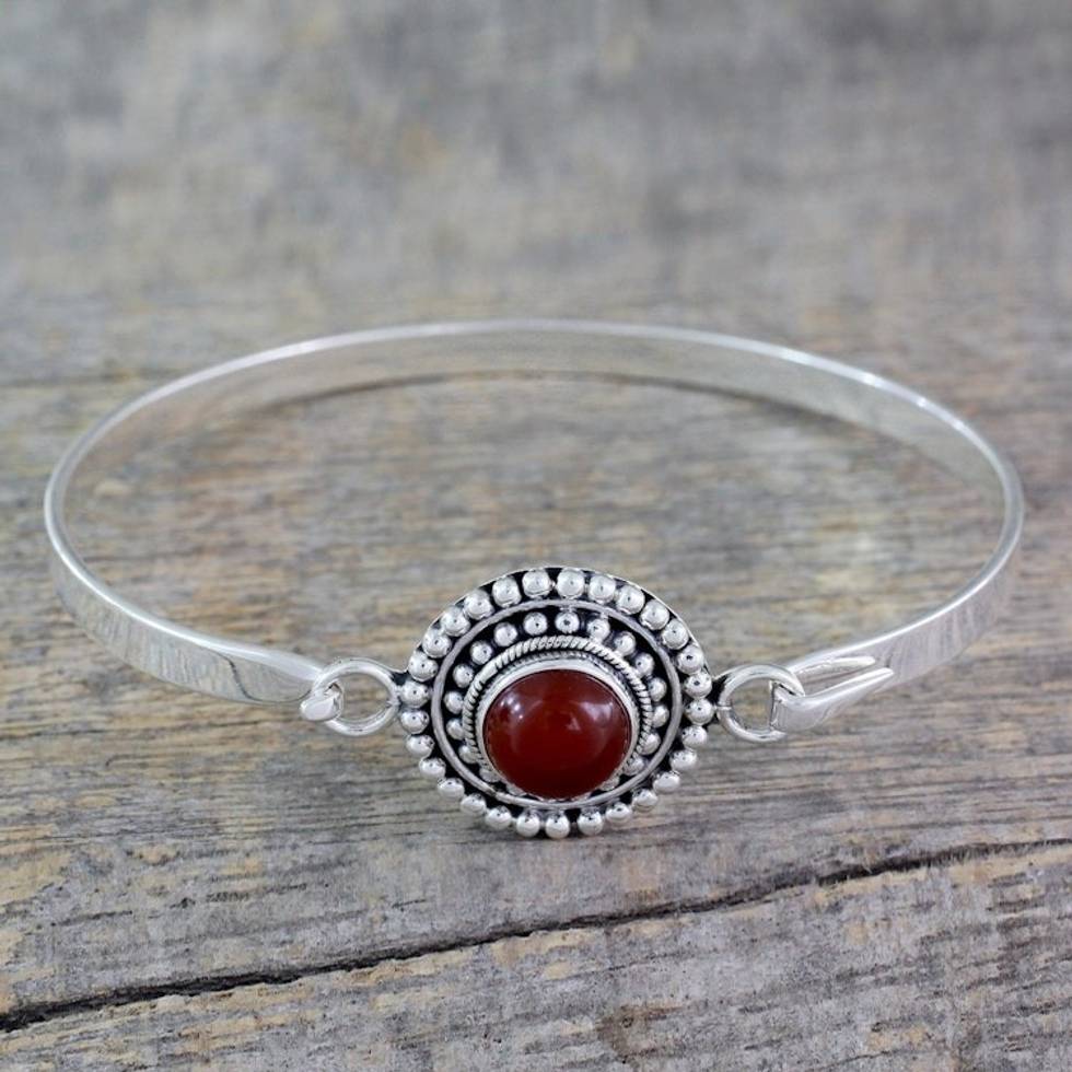 Handcrafted Carnelian and Sterling Silver Bangle Bracelet 'Passionately' Item ID: 2671793682