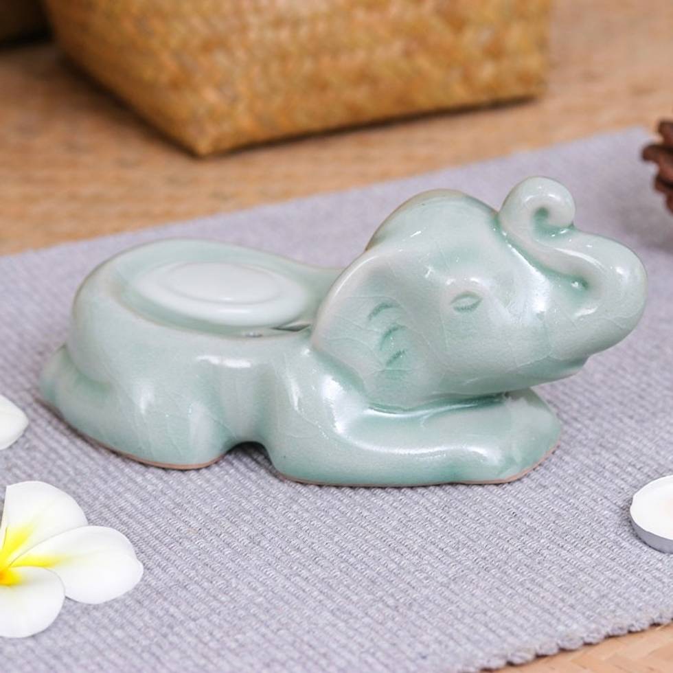 Handcrafted Celadon Ceramic Elephant Soap Dish in Green 'Elephant Clean' Item ID: 2671797729
