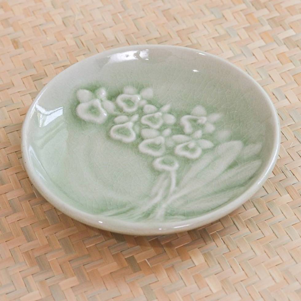 Handcrafted Celadon Dessert Plate 'Orchid Bouquet' Item ID: 2671798158