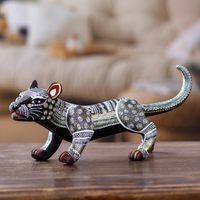 Handcrafted Ceramic Alebrije Figurine of Black Jaguar 'Dark Stealth' Item ID: 2669897863