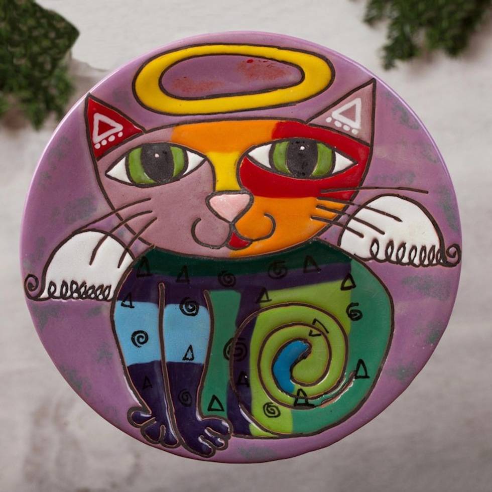 Handcrafted Ceramic Angel Cat Wall Art from Mexico 'Angelic Kitty' Item ID: 2669897749