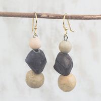 "Invite these artisanal earrings to add a bohemian touch to your wardrobe. By Grace Bernice Buamah in Ghana, the earrings feature brown and black beads that are handcrafted from ceramic, swinging from brass hooks."