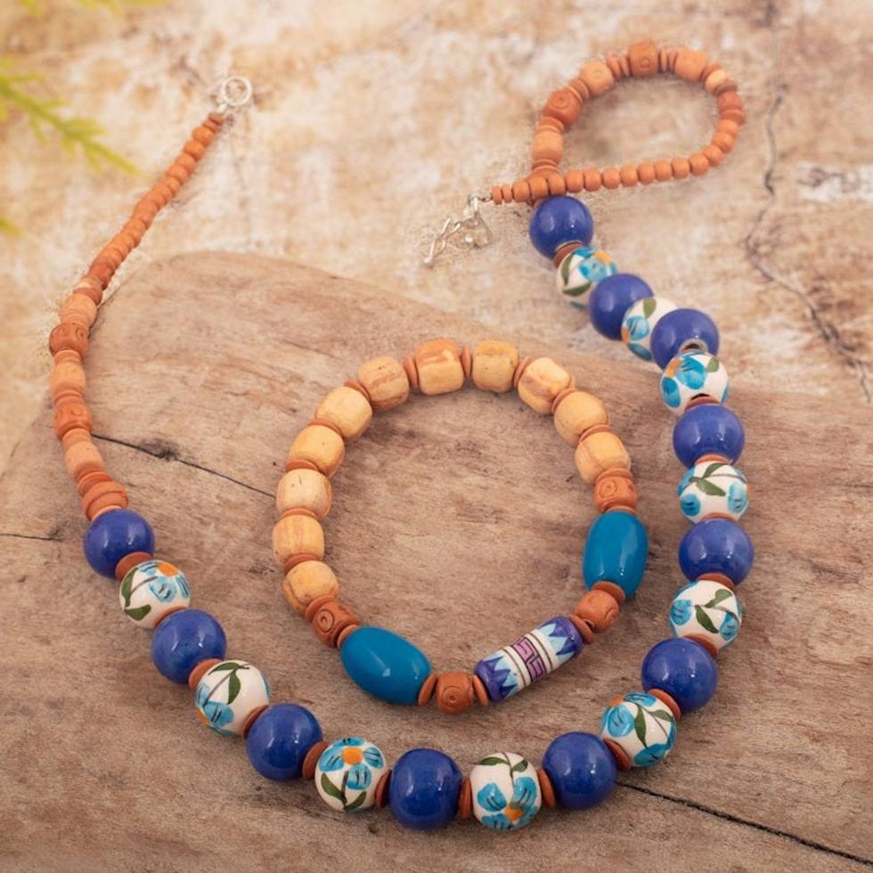 Handcrafted Ceramic Beaded Necklace and Stretch Bracelet 'Trust and Stability' Item ID: 2671819494