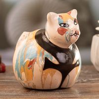 Handcrafted Ceramic Cat Statuette with Colorful Design 'Feline Colors' Item ID: 2671698042