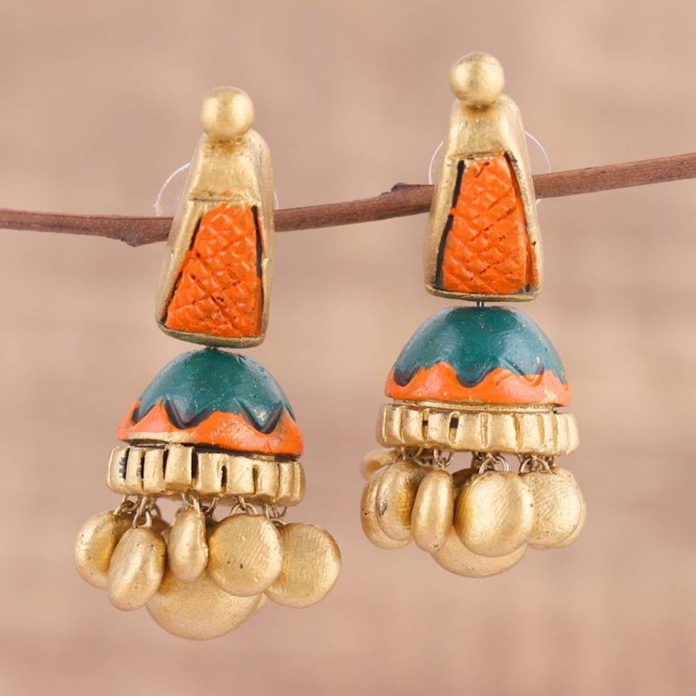 Handcrafted Ceramic Dangle Earrings from India 'Golden Desire' Item ID: 2671790754