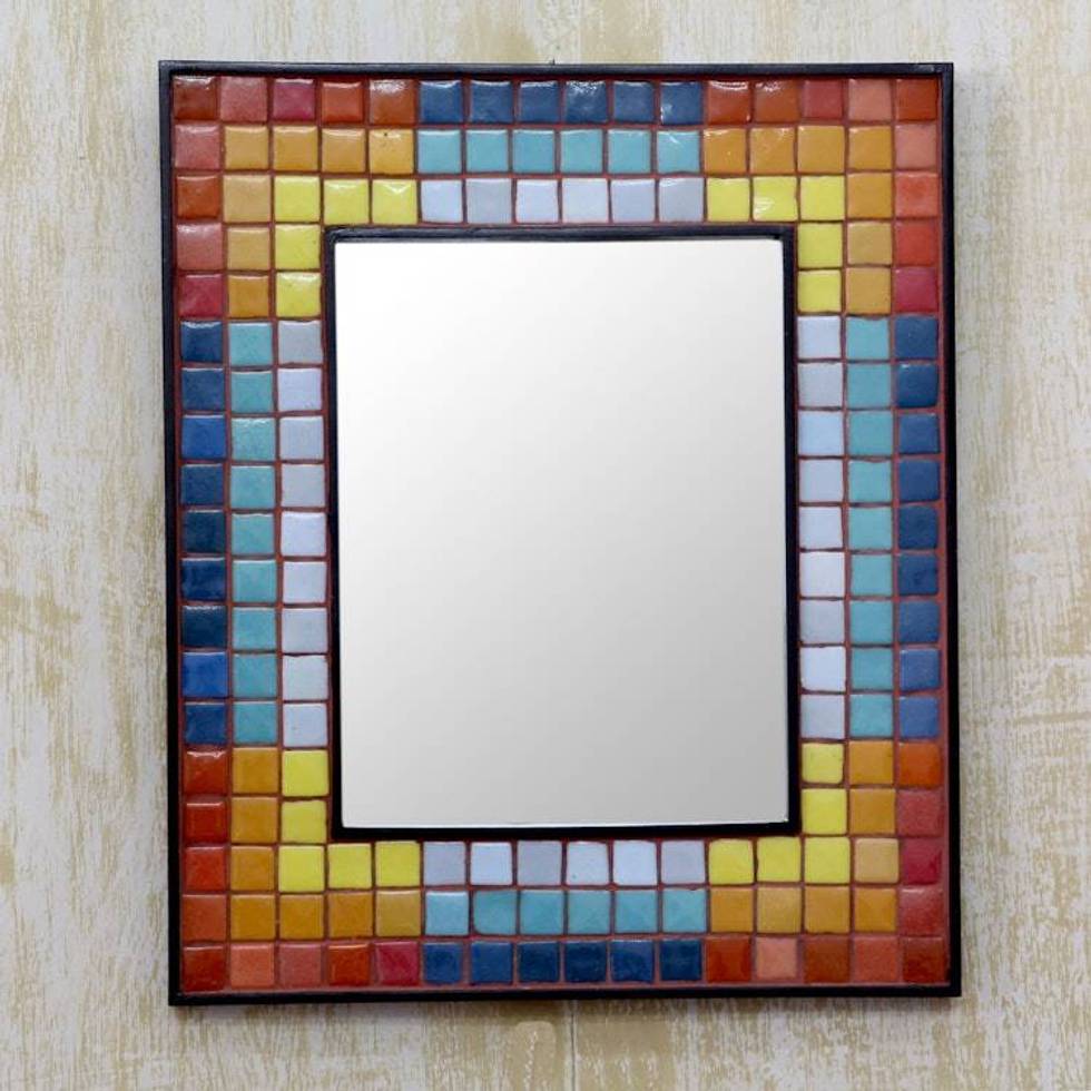 Handcrafted Ceramic Mosaic Wall Mirror in Rainbow Colors 'Colors in Harmony' Item ID: 2676664238