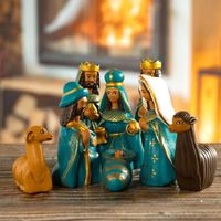 Handcrafted Ceramic Nativity Scene in Blue Set of 8 'Arrival of Jesus' Item ID: 2676641577