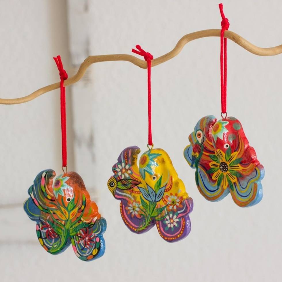 I love these birds. They hang year round in my kitchen window. They are joined by other Fair Trade bird ornaments from around the world.