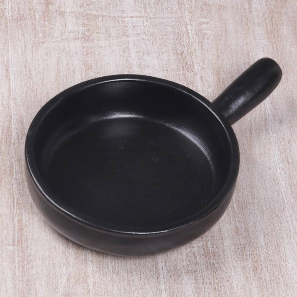 Handcrafted Ceramic Serving Skillet from Indonesia 'Black Fryer' Item ID: 2671732876