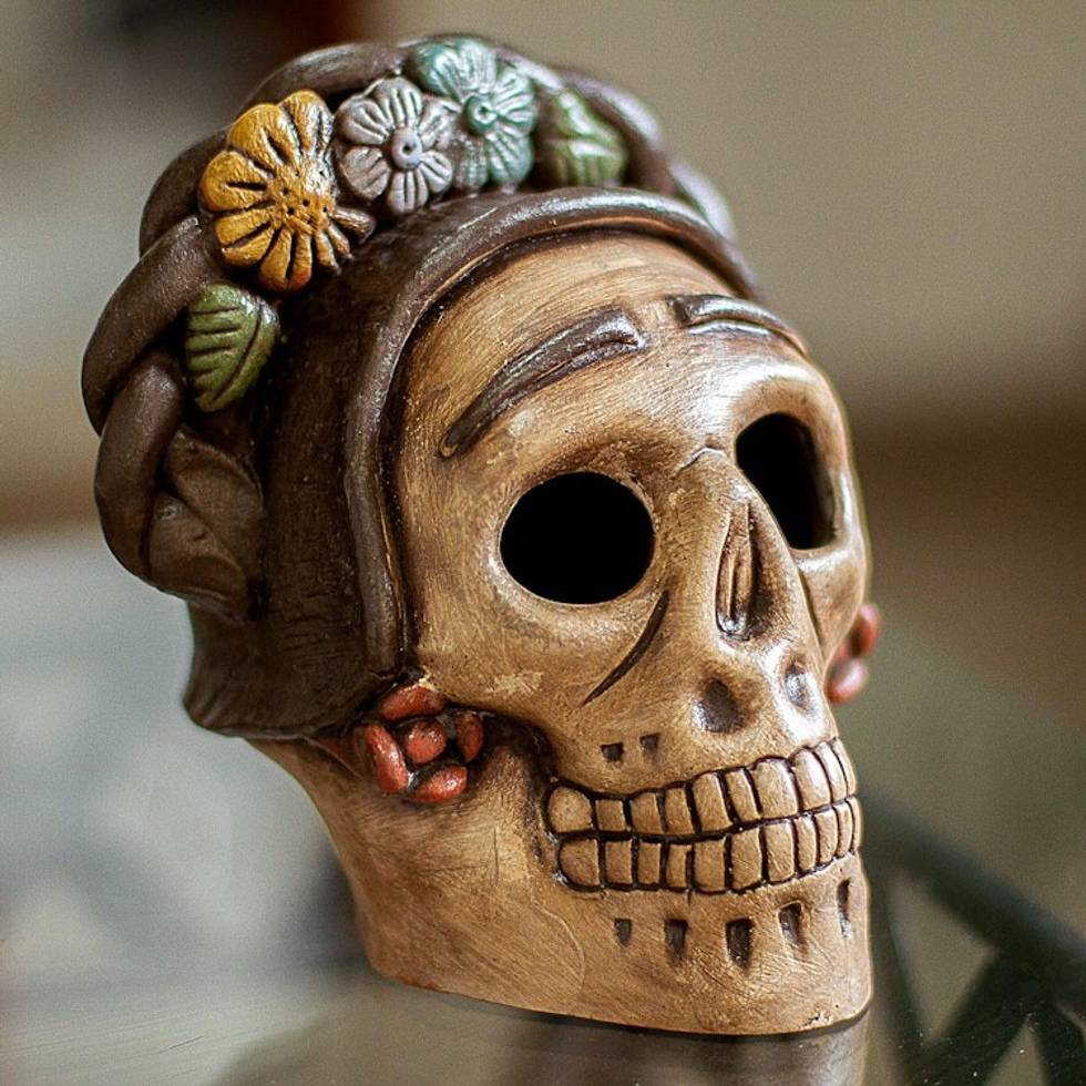 Handcrafted Ceramic Skull Figurine Honoring Frida Kahlo 'Honoring Frida' Item ID: 2669933095