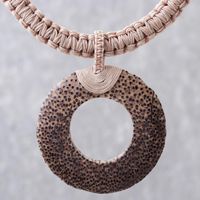Handcrafted Coconut Wood and Leather Cord Pendant Necklace 'Earth Ring in Ecru' Item ID: 2671799511