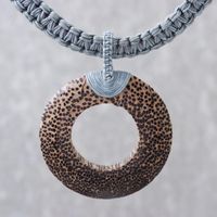 Handcrafted Coconut Wood and Leather Cord Pendant Necklace 'Earth Ring in Grey' Item ID: 2671799508