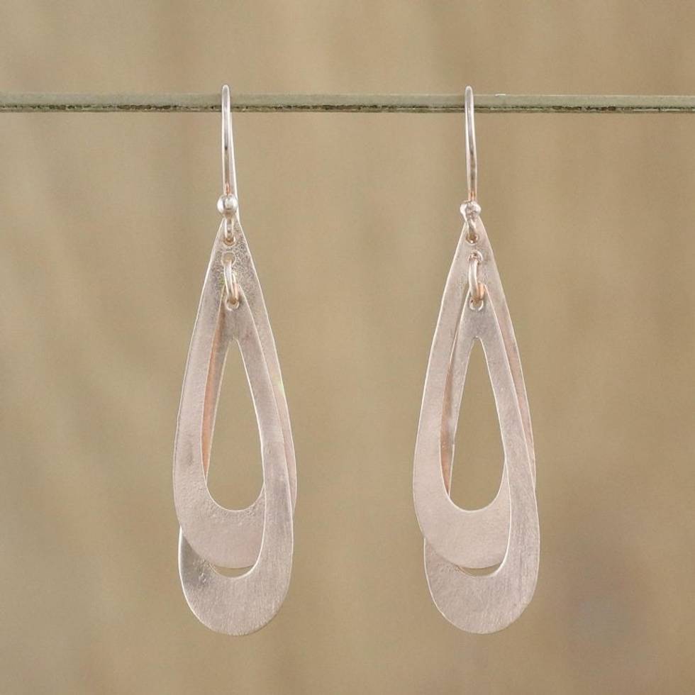 Handcrafted Contemporary Rose Gold Plated Thai Earrings 'Tears Entwined' Item ID: 2669919347