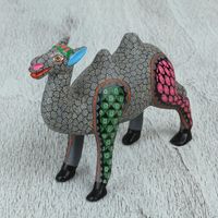 Handcrafted Copal Wood Camel Alebrije Figurine in Grey 'Cheerful Camel' Item ID: 2669897965