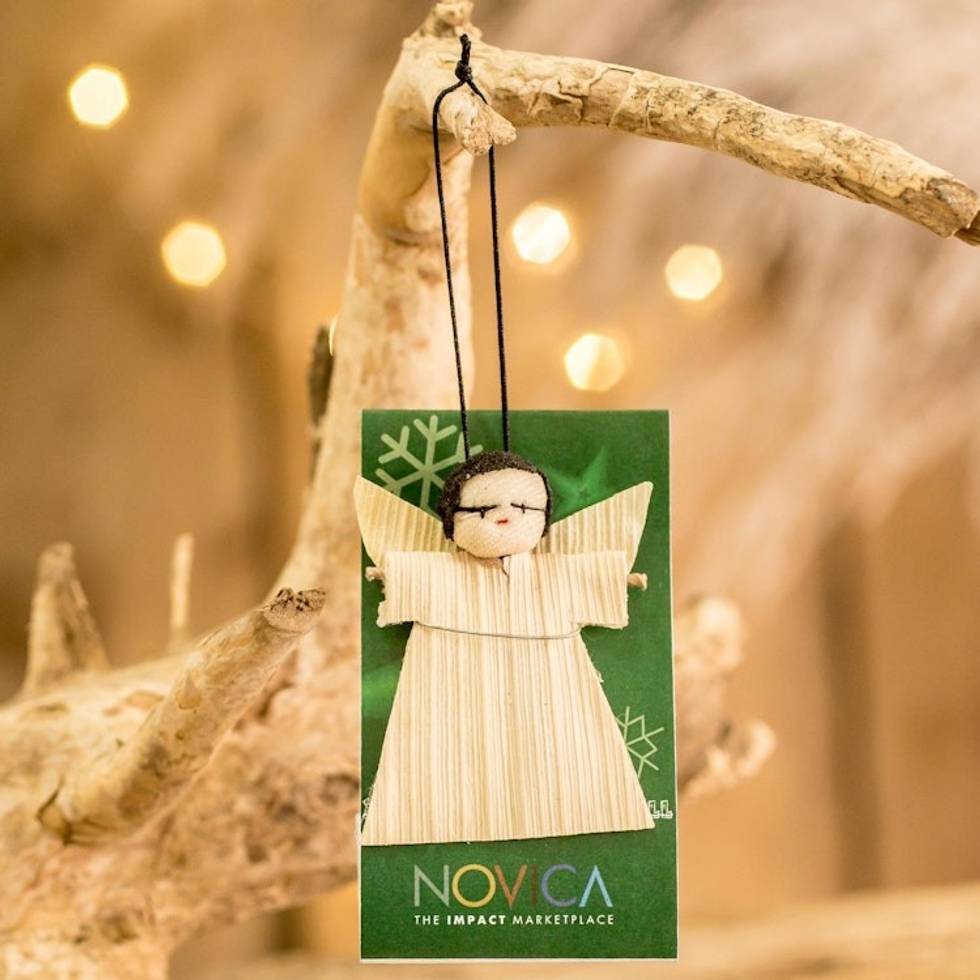 Handcrafted Cotton and Cibaque Angel Worry Doll in Beige 'Fortune Angel' Item ID: 2669933210