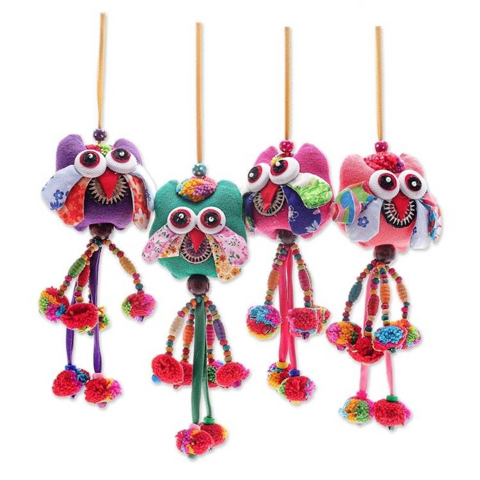 Handcrafted Cotton-Blend Owl Ornaments Set of 4 'Pretty Owl' Item ID: 2676653138