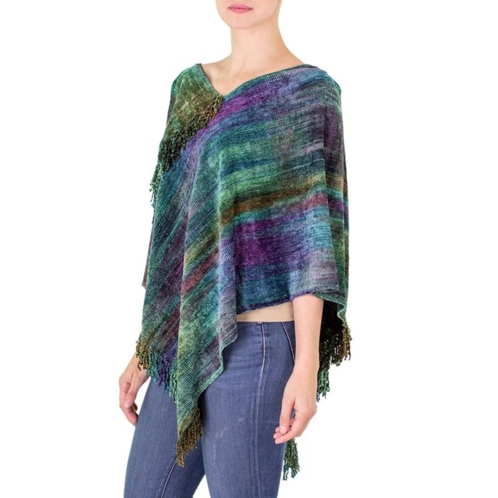 Handcrafted Cotton Blend Poncho 'Magical Forest' Item ID: 2671626532