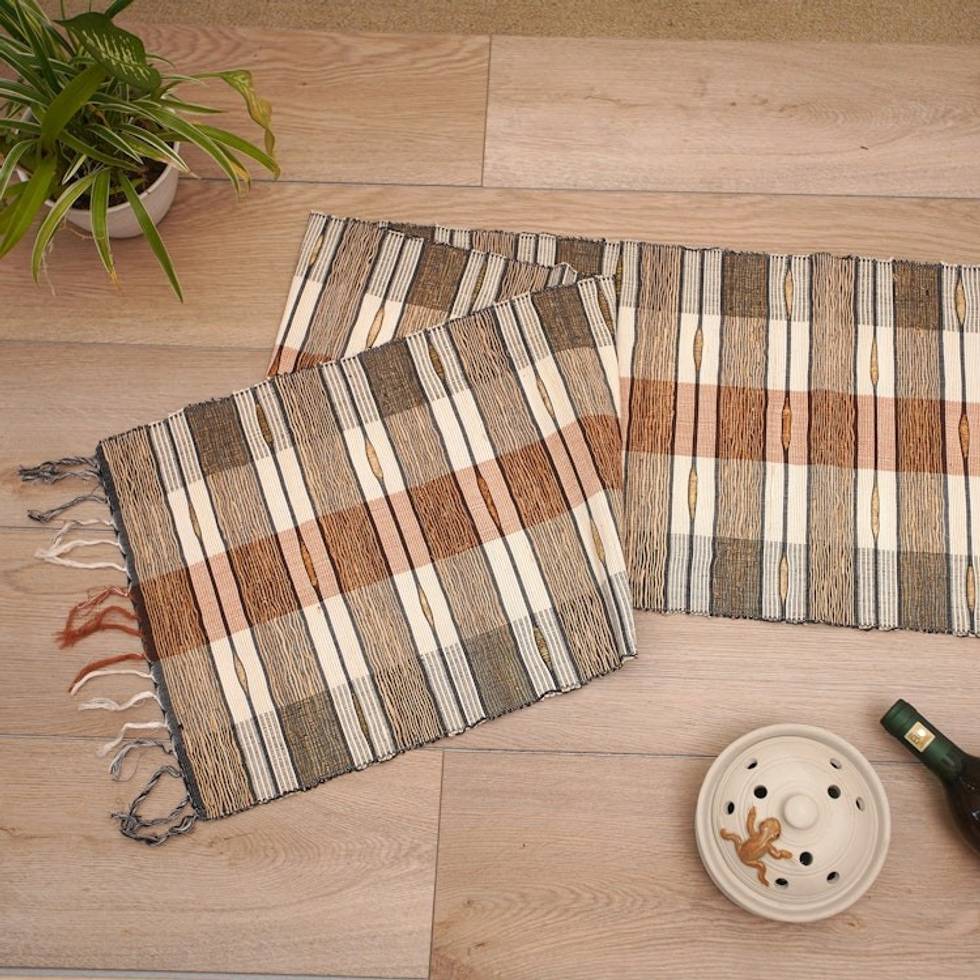 "Crafted in Bali and presented by Liem Hauw, this cotton and fragrant root accessory features a tasteful checkered pattern in a warm palette. The table runner also features fringes, making a unique decoration for your dining room."
