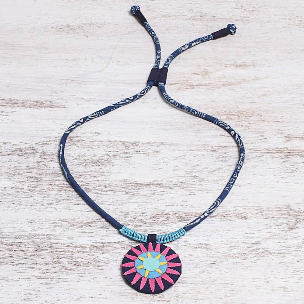 Handcrafted Cotton Pendant Necklace in Pink from Thailand 'Pink Hmong Sun Medallion' Item ID: 2671798592