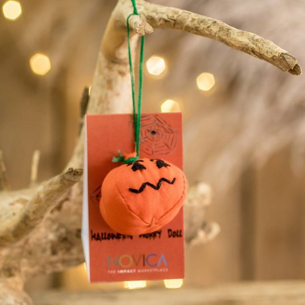 Handcrafted Cotton Pumpkin Worry Doll from Guatemala 'Bewitching Pumpkin' Item ID: 2671772087